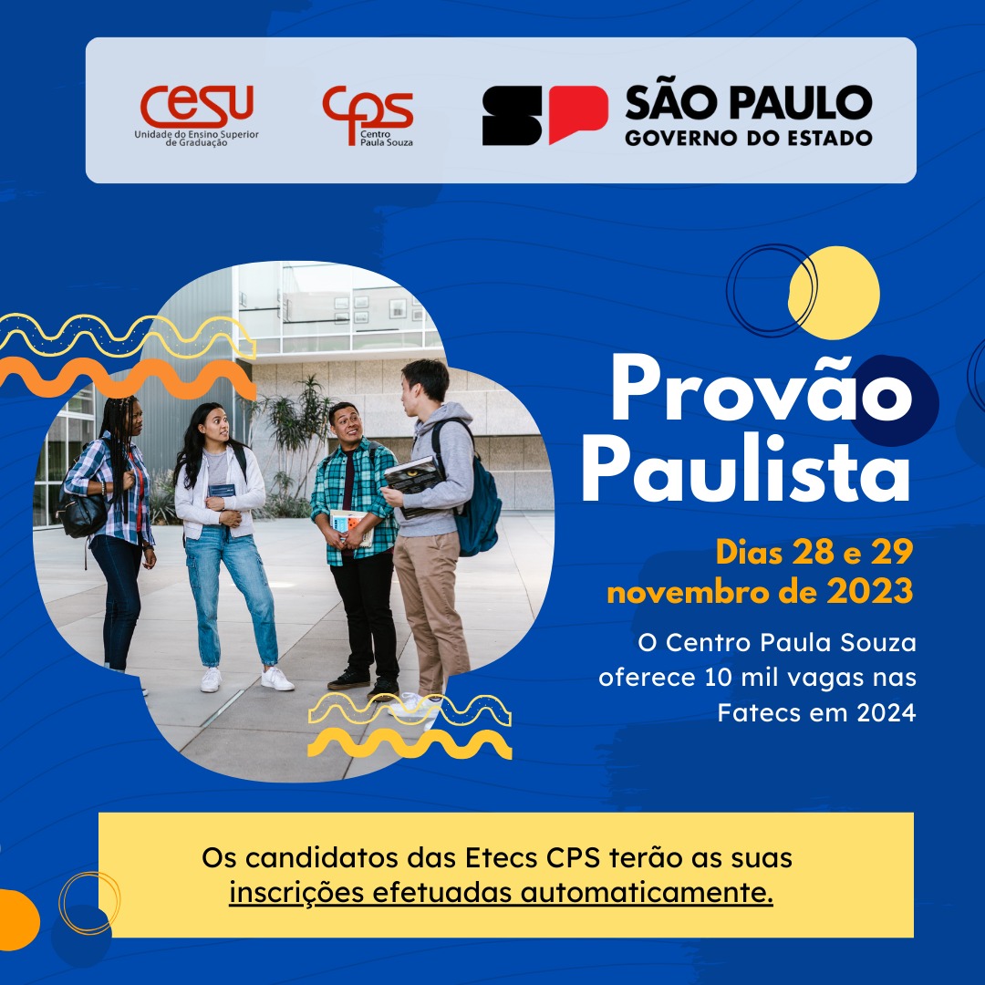 Entre os dias 30 de outubro e 1º de novembro acontece a 7ª Mostra de Trabalhos Docentes em Regime de Jornada Integral (RJI) do Centro Paula Souza (CPS) com palestras, mesas-redondas e pôsteres